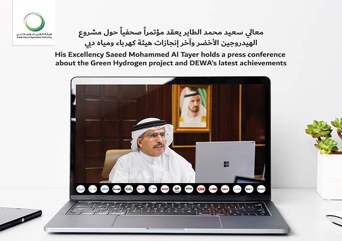 معالي سعيد محمد الطاير يعقد مؤتمراً صحفياً حول مشروع الهيدروجين الأخضر وآخر إنجازات هيئة كهرباء ومياه دبي